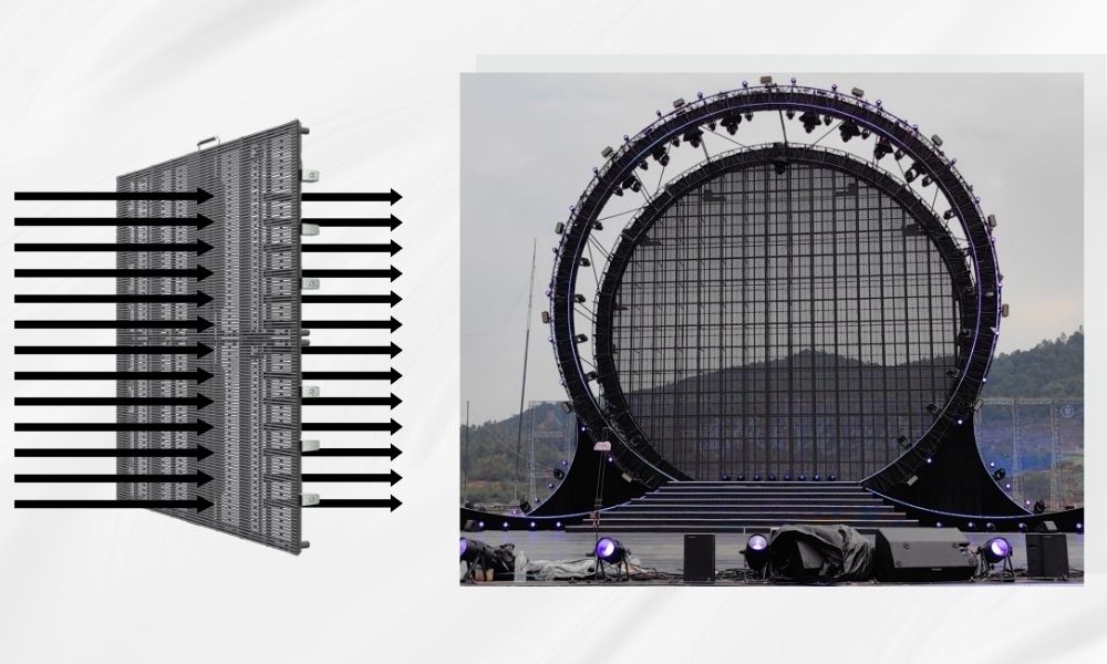 Độ trong suốt lên đến 52%: Xóa nhòa ranh giới không gian. Vừa hiển thị visual rực rỡ, vừa cho phép hệ thống đèn beam/laser đánh xuyên thấu từ phía sau, tạo hiệu ứng thị giác đa chiều mãn nhãn.