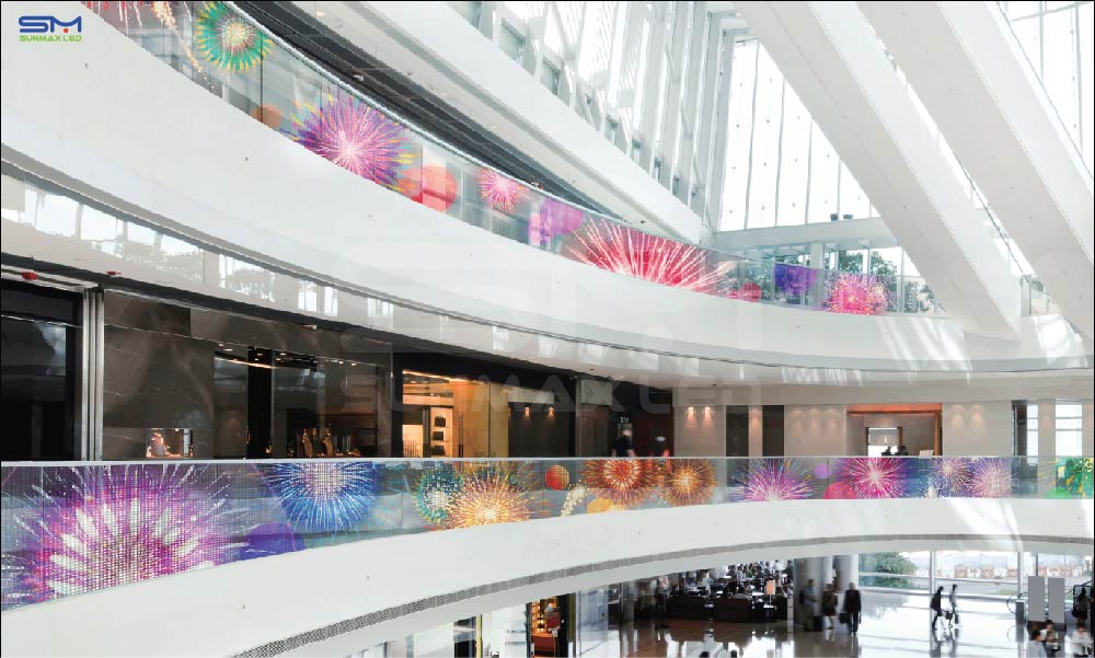 Màn hình LED trung tâm thương mại trong suốt là một loại của màn hình LED dùng để hiển thị trong các không gian kiến trúc sang trọng và hiện đại. Xuất phát từ những hạn chế của màn hình LED truyền thống như việc đòi hỏi khả năng chịu tải cao từ kết cấu tòa nhà ban đầu. Hay việc lắp đặt màn hình truyền thống thường cần đến khung thép quy mô lớn, gây tốn kém thời gian và công sức. Khi không hoạt động, màn hình truyền thống thường có màu đen, ảnh hưởng đến thẩm mỹ của tòa nhà, cản ánh sáng tự nhiên và làm giảm tầm nhìn.
