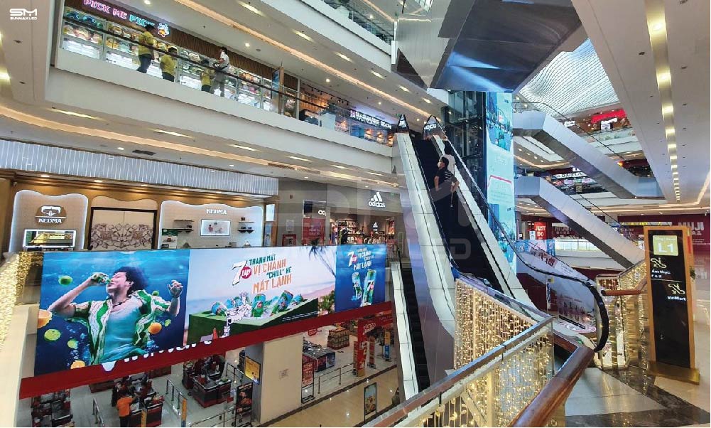 Màn hình LED không chỉ trình chiếu quảng cáo mà còn phát các chương trình giải trí, video âm nhạc hoặc thông báo sự kiện, góp phần tạo nên không gian mua sắm thú vị, hấp dẫn hơn.