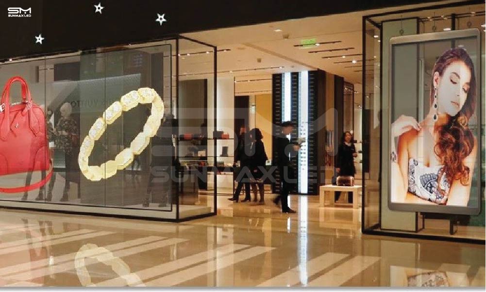 Màn hình LED trung tâm thương mại trong suốt là một loại của màn hình LED dùng để hiển thị trong các không gian kiến trúc sang trọng và hiện đại. Xuất phát từ những hạn chế của màn hình LED truyền thống như việc đòi hỏi khả năng chịu tải cao từ kết cấu tòa nhà ban đầu. Hay việc lắp đặt màn hình truyền thống thường cần đến khung thép quy mô lớn, gây tốn kém thời gian và công sức. Khi không hoạt động, màn hình truyền thống thường có màu đen, ảnh hưởng đến thẩm mỹ của tòa nhà, cản ánh sáng tự nhiên và làm giảm tầm nhìn.
